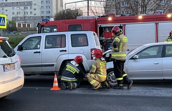 Do kolizji dwóch samochodów doszło w piątkowe popołudnie w al. Piłsudskiego w Piotrkowie. Jeden z pojazdów zapalił się i musiała interweniować straż pożarna.