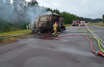 Z kolei pojazd ciężarowy uczestniczący w tym wypadku zapalił się.