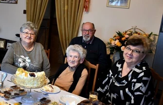 Dostojna Jubilatka, która jutro będzie obchodzić trzycyfrową rocznicę swoich urodzin, wciąż utrzymuje się w świetnej kondycji i z optymizmem patrzy na kolejne dni. Prezydent Krzysztof Chojniak przekazał na ręce pani Kamilli list gratulacyjny, kosz kwiatów, a także drobny upominek.