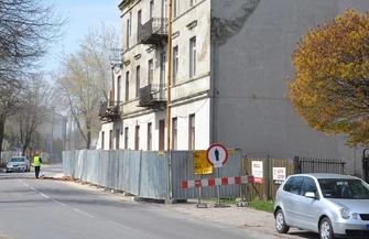 Prace rozbiórkowe powodują utrudnienia dla pieszych, ponieważ część chodnika przy rozbieranym budynku została wyłączona z użytkowania.