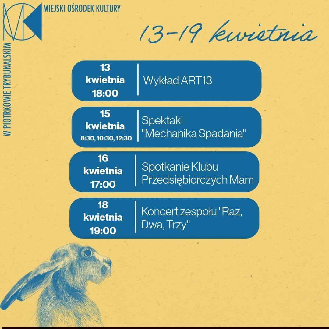 Mecze, koncerty, spektakle, wykłady, turnieje, wystawy, dni otwarte szkół to wszystko w weekend od 17 do 19 kwietnia. Imprezy odbędą się w Piotrkowie, Tomaszowie, Radomsku, Bełchatowie, Kamieńsku, Woli Krzysztoporskiej czy gminie Wolbórz.