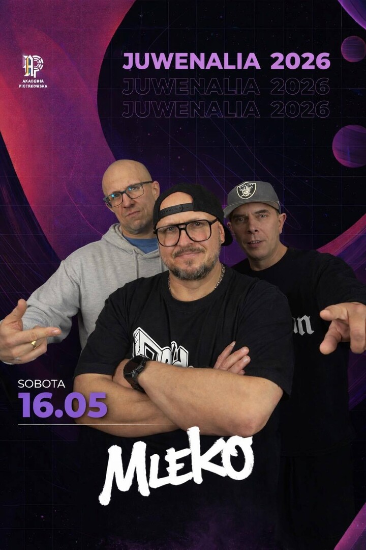 Raper Mleko otworzy koncertową część Juwenaliów 2026 w Piotrkowie Trybunalskim. Występ odbędzie się 16 maja na kampusie Akademii Piotrkowskiej, a publiczność będzie mogła usłyszeć premierowo nowe utwory oraz odświeżone kawałki dobrze znane fanom.