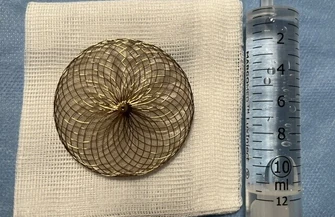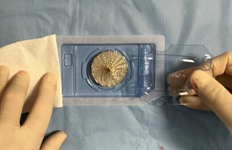 Dr hab. n. med. Jan Zbigniew Peruga, kierownik Pracowni Hemodynamiki szpitala im. Biegańskiego w Łodzi zaznacza, że pani Barbarze wszczepiony został prawie pięciocentymetrowy krążek do serca.