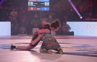 Po Dawidzie na matę wyszła kolejna debiutantka, Paulina Czechorowska, która miała o wiele trudniejsze zadanie, ponieważ musiała się zmierzyć z brązową medalistką z Rio de Janeiro Moniką Michalik (na zdjęciach), ostatecznie piotrkowianka przegrała ten pojedynek 0:4 (0:6). To była jedyna tego wieczoru przegrana walka reprezentanta piotrkowskiej drużyny, pozostałe cztery jej zawodnicy wygrali, a jedna zakończyła się remisem.