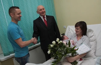 3 stycznia prezent otrzymał także pierwszy urodzony w tym roku piotrkowianin, który przyszedł na świat w Powiatowym Zespole Opieki Zdrowotnej przy ulicy Roosevelta. Krystian Jonczyk urodził się 1 stycznia o 20.45. Wiceprezydent Piotrkowa Andrzej Kacperek wręczył szczęśliwym rodzicom chłopca czek na dwa tysiące złotych.
