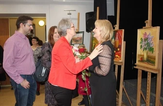 Martwe natury, pejzaże pól i lasów czy kompozycje kwiatowe, wszystko to w ciepłych, niemal słonecznych barwach - takie są obrazy, które Teresa Janocha zaprezentowała na swojej pierwszej, indywidualnej wystawie. Artystka dosłownie zabrała gości wernisażu do swojego świata, ponieważ obrazy często przedstawiają otaczający ją na co dzień krajobraz i przyrodę. Ulubione techniki malarki to akryl i olej i takie też malarstwo prezentowane na tej wystawie.