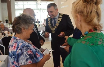 W sali bankietowej Impresja w Sulejowie burmistrz Sulejowa Wojciech Ostrowski wręczył dostojnym jubilatom medale w obecności przewodniczącego Rady Miejskiej Bartosza Borkowskiego i zastępcy kierownika USC Małgorzaty Hamczyk.