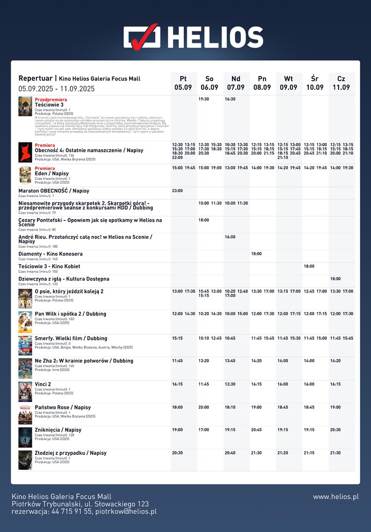Helios Piotrków repertuar na tydzień 5–11.09.2025 – „Obecność 4”, „Teściowie 3”, „Eden” i więcej