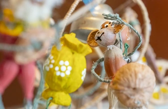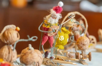 Mariusz Bogusławski od lat udowadnia, że to, co dla innych wydaje się bezwartościowe, może stać się tworzywem sztuki. W jego pracowni nie brakuje łupinek po orzechach, kawałków drewna, traw, mchu, kory czy ziaren zbóż. Z tych elementów powstają nie tylko szopki i anioły, ale także fantazyjne figurki – zwierzęta, postacie grające na instrumentach, wspinające się po linach czy poruszające się na miniaturowych wózkach. W rękach Mariusza Bogusławskiego orzech może stać się bałwankiem, zabawką, elementem stroju świętego Mikołaja albo częścią pełnej humoru scenki.