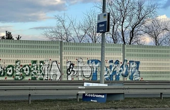 Ulica Miast Partnerskich. Tabliczka z napisem “Kostroma” znalazła się tam, gdzie zdaniem niektórych od kilku dni powinna już być. Wątpimy w to, by komuś przyszło do głowy podnieść ją z ziemi i przykręcić w miejscu, w którym była.
