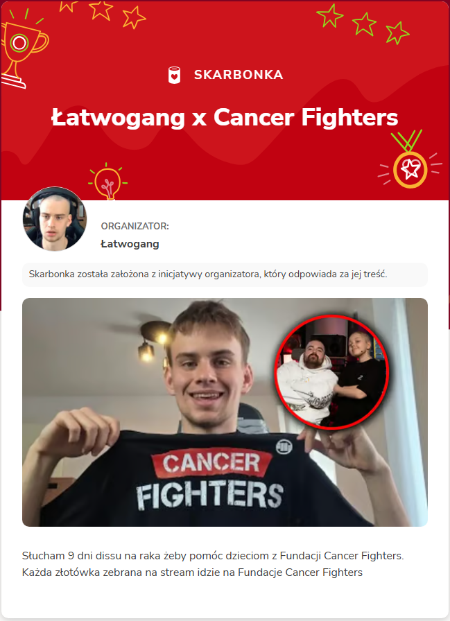 W Piotrkowie Trybunalskim lokalna społeczność dołączyła do ogólnopolskiej akcji charytatywnej zainicjowanej przez internetowego twórcę Łatwoganga. Kampania, realizowana w ramach projektu „Cancer Fighters” osiągnęła w krótkim czasie rekordową skalę. W sieci zebrano ponad 250 milionów złotych i suma wciąż rośnie.