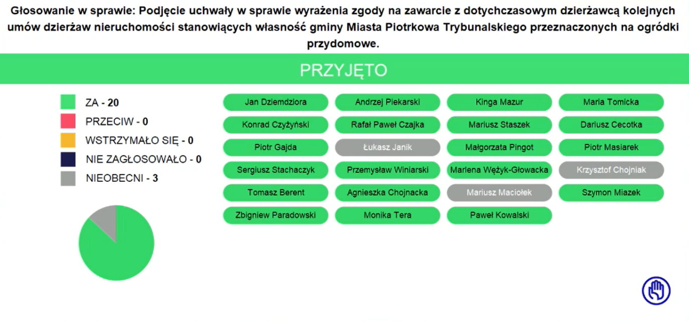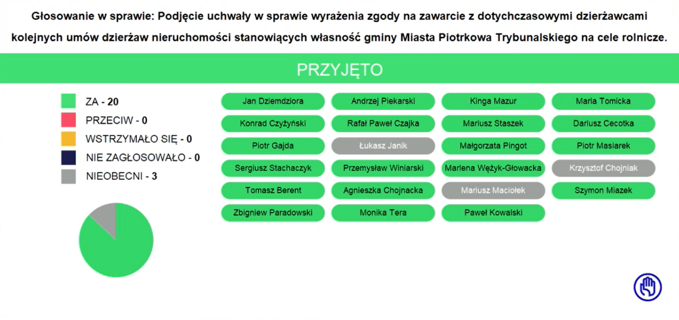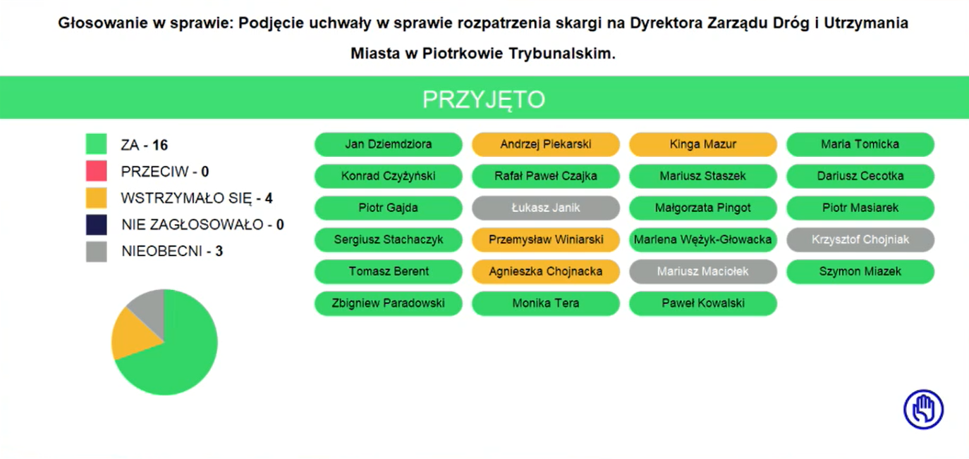 Wiceprzewodniczący Rafał Czajka o zabraniu głosu przez mieszkańców Piotrkowa: "Zachęcam mieszkańców do brania udziału w komisjach", "Jestem jednak zmuszony odmówić głosu dwóm panom, jacy przyszli zadać pytania Mieczysławowi Kacperkowi". "Szanując panów zainteresowanie, sami mówicie, że nie macie interesu prawnego sprawą", "To wypacza charakter dzisiejszych obrad, zapraszam do kontaktu podczas komisji".