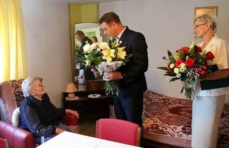 A tuż po życzeniach przyszedł czas na rozmowy i wspomnienia, szczególnie te z czasów młodości. Pani Regina opowiadała o swoich rodzicach, którzy byli rolnikami – i to – jak podkreślała – bardzo dobrymi rolnikami i pracowitymi ludźmi. Ojciec, który brał udział w I wojnie światowej, był później sołtysem Borowej. To dzięki rodzicom pani Regina zdobyła dobre jak na ówczesne czasy wykształcenie (gimnazjum), a później została krawcową, która nie tylko sama szyła, ale i uczyła tego fachu inne młode dziewczęta. – Pamiętam, jak tata kupił mi najlepszą wtedy maszynę Singera – wspominała pani Regina.