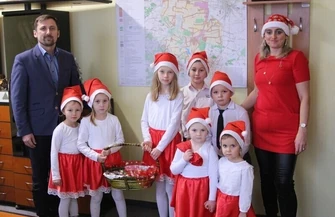 Dzieci przyniosły ze sobą słodycze i upominki, którymi obdarowały wójta gminy Romana Drozdka (który niestety nie był obecny), jego zastępcę Mieczysława Warszadę i wszystkich urzędników.