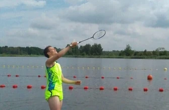 Zanim do wody weszli zawodnicy biorący udział w zawodach, specjalnie przygotowane boisko przetestowali zawodowcy badmintona halowego: Dorota Danielak i jej syn Mateusz.