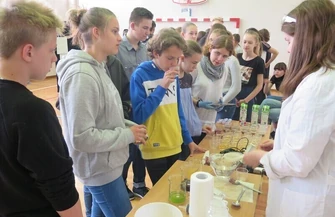 - Chcemy pokazać tzw. złoty deszcz. Mieszamy dwa roztwory, jodek potasu i octan ołowiu, później nasz kolega doprowadzi do tego, że powstanie piękny złoty osad. Cieszę się, że coś takiego jest organizowane w naszym mieście, ponieważ dzięki temu wiele młodych osób może się rozwijać - mówiły "Purpurowe Dymy" ze Szkoły Podstawowej nr 8.