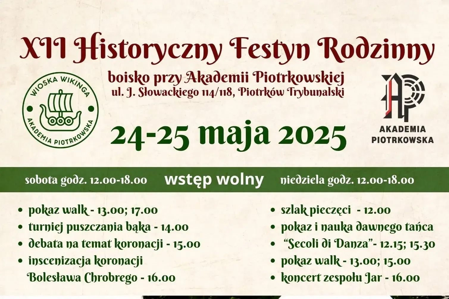 XII Historyczny Festyn Rodzinny "Wioska Wikinga" - teren Akademii Piotrkowskiej