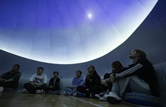 Sercem Planetobusu jest duży namiot-kopuła o średnicy 7 metrów, mogący pomieścić około 30 widzów. To właśnie na jego półkolistym suficie edukatorzy z Centrum Nauki Kopernik wyświetlają niezwykłe pokazy astronomiczne prowadzone na żywo.