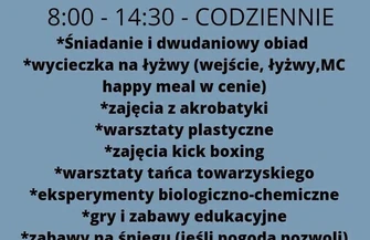 W załączonej galerii znajdziecie plakaty z propozycjami na tegoroczne ferie wraz z najważniejszymi informacjami.