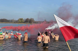 Wierzejskie Morsy 103. rocznicę odzyskania przez Polskę niepodległości uczciły na swój sposób, czyli wchodząc do zimnej wody na piotrkowskim „Słoneczku”.