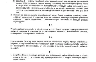 Związkowcy postulowali również za tym, aby w ciągu roku w 100% płatne było do 30 dni zwolnienia lekarskiego funkcjonariuszy, a za czas choroby powyżej 30 dni otrzymywaliby oni 80% wynagrodzenia. MSWiA proponuje, aby 100% przysługiwało funkcjonariuszom z tzw. pierwszej linii, którzy na co dzień pełnią służbę ryzykując swoim zdrowiem i życiem.