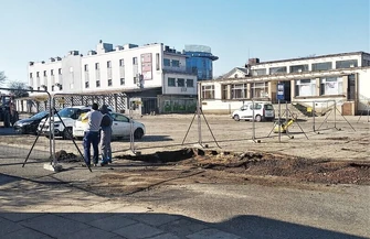 Na początek robotnicy zajęli się usuwaniem starej nawierzchni byłego dworca. Prace ziemne obejmują też wywożenie gruzu z budowy.