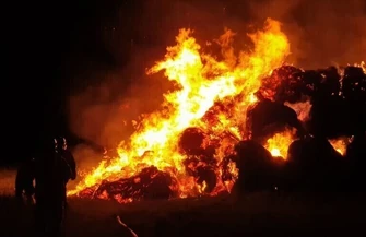 - Na miejscu okazało się, że jest to pożar kwalifikowany jako duży. Płonęły bele siana. Właściciel przekazał nam, że składował ich 650 - powiedział dowódca akcji gaśniczej, mł. bryg. Tomasz Wojtakowski. Strażacy zabezpieczyli płonący stos, by ogień nie rozprzestrzenił się na większe połacie. - Akcja dogaszania może potrwać do kilku dni, ponieważ całość trzeba rozgarnąć za pomocą ciężkiego sprzętu z zasobów Wydziału Zarządzania Kryzysowego. Na miejscu takim sprzętem nie dysponujemy. Dopiero wtedy resztki słomy będą rozgarniane i przelewane wodą. W ten sposób dogaszane będzie miejsce pożaru - dodał dowódca.