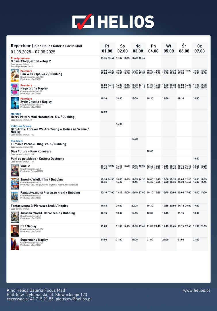 Warto również zobaczyć filmy, które wyświetlane są już od jakiegoś czasu: "Vinci 2", "Smerfy. Wielki Film", "Fantastyczna 4: Pierwsze Kroki", "F1", "Superman" oraz "Jurassic World: Odrodzenie".