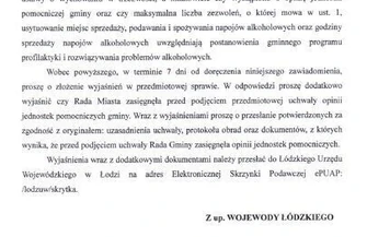 Odnośnie pierwszej uchwały wojewoda ma zastrzeżenia do sposobu określenia ograniczeń dotyczących sprzedaży alkoholu pomiędzy godziną 23 a 6. "W ocenie organu nadzoru, ustawowe pojęcie ograniczenia sprzedaży alkoholu nie jest tożsame z pojęciem zakaz sprzedaży alkoholu" - czytamy w uzasadnieniu.
