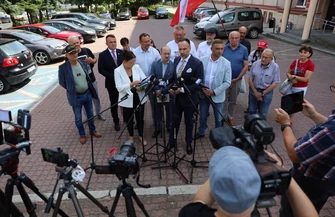 - My tutaj jako Ruch Obrony Granic od początku wspieramy to referendum i z bólem musimy dzisiaj stwierdzić to, że władze lokalne i środowiska lokalne związane z Donaldem Tuskiem, z koalicją rządzącą są chronione, tak to odbieram, przez Komisję Wyborczą, przez panią komisarz w tym miejscu. No bo jedna trzecia, proszę Państwa, praktycznie jedna trzecia podpisów została odrzucona. To jest po prostu skandal, skandal, na który my się po prostu nie możemy zgodzić. Tutaj również odnośnie drugiego referendum mamy sytuację również patologiczną. No bo jak nazwać sytuację, w której władze powiązane silnie z Donaldem Tuskiem cały czas blokują debatę publiczną i rozmowę na temat Centrum Integracji Cudzoziemców i w ogóle lokowania migrantów w tym miejscu. Sprzeciwiamy się temu działaniu. To działanie pokazuje jednoznacznie, że nawet na poziomie samorządowym próbuje się wprowadzać politykę migracyjną albo blokować działania takie neutralizujące tą politykę migracyjną poprzez różne działania administracyjne, również prawdopodobnie wyborcze. Nie ma na to naszej zgody. Będziemy walczyli o to, żeby piotrkowianie mieli swoje referenda, dwa referenda. Jesteśmy do nich dobrze przygotowani i mam nadzieję, że już niebawem po zwycięstwie w sądzie administracyjnym będziemy mogli odwoływać tutaj te władze, którym należy się czerwona kartka za to, w jaki sposób traktują mieszkańców i w jaki sposób tak naprawdę po cichu akceptują politykę migracyjną, na którą w Polsce i w Piotrkowie Trybunalskim nie ma zgody.