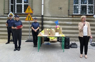 Jestem wychowawczynią wspaniałych dzieci, które o bezpieczeństwie wiedzą już chyba wszystko, pomimo tak młodego wieku. Przystąpiliśmy do konkursu i tematyka piosenki była oczywista, bo wzięła się z tytułu konkursu "Moje i Twoje bezpieczeństwo". Pierwsze słowa naszego utworu to "Bądź bezpieczny Ty i ja". Następnie szukaliśmy rymów, aby łatwo się słuchało i żeby słowa te zostały zapamiętane prze odbiorcę - mówiła w trakcie rozdania nagród Iwona Radomiak, wychowawczyni klasy IB.