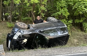 Jak informują świadkowie zdarzenia, suzuki znajdowało się na przyczepie ciągniętej przez opla. Z nieznanych przyczyn suzuki spadło z lawety, dachowało i wpadło do rowu.
