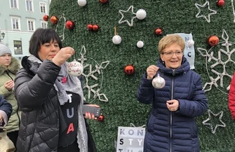 W akcji uczestniczyła także Elżbieta Radziszewska, poseł na Sejm RP z ramienia Platformy Obywatelskiej. - Przed świętami ludzie przeżywają to, co w sercu im gra, a nam cały rok minął pod hasłem "konstytucja" i "wolne sądy". Cały czas obserwujemy coraz większe ograniczanie zapisów konstytucji, łamanie ich w Sejmie i Senacie. Wolne sądy praktycznie jeszcze istnieją, ale cała akcja zastraszania, zamrażania sędziów, wzywania przed komisję dyscyplinarną jest po to, żeby pokazać im, że nie mogą orzekać w sposób niezawisły. Władza chce być bezkarna. Prokuratura jest podporządkowana panu Ziobrze i wiemy jak różne postępowania są umarzane. W związku z tym ubraliśmy w Piotrkowie choinkę bombkami z napisami, które są najważniejsze w życiu każdego Polaka. Konstytucja powinna stać w naszej obronie, a władza nie może robić co tylko jej się podoba - mówi poseł Radziszewska.