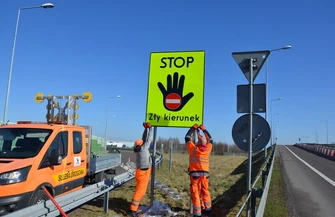 Charakterystyczne tablice z symbolem dłoni i piktogramem znaku „zakaz wjazdu” mają zapobiegać wjeżdżaniu pod prąd na trasy szybkiego ruchu.