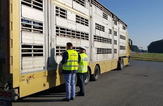 Inspektorzy transportu drogowego zatrzymali też polski ciągnik siodłowy z podpiętą naczepą. Zestawem przewożono żywe świnie z pobliskiego gospodarstwa. Zwierząt załadowano za dużo, bo ciężarówka ważyła 43,2 t zamiast dopuszczalnych 40 t. O prawie 1 t przekroczony był także nacisk grupy osi naczepy na drogę. W trakcie kontroli, inspektorzy poczuli też woń alkoholu od kierowcy. Badanie trzeźwości wykazało 0,25 promila alkoholu w powietrzu wydychanym przez mężczyznę. Kierowca został przekazany do dalszych czynności funkcjonariuszom Komendy Miejskiej Policji w Piotrkowie Trybunalskim. Przybyły na miejsce kontroli lekarz Inspekcji Weterynaryjnej zakazał transportu świń do miejsca docelowego. Zwierzęta wróciły do hodowcy w celu zapewnienia im odpoczynku. Za stwierdzone przekroczenia parametrów wagowych wobec przewoźnika zostanie wszczęte postępowanie administracyjne zagrożone karą pieniężną.