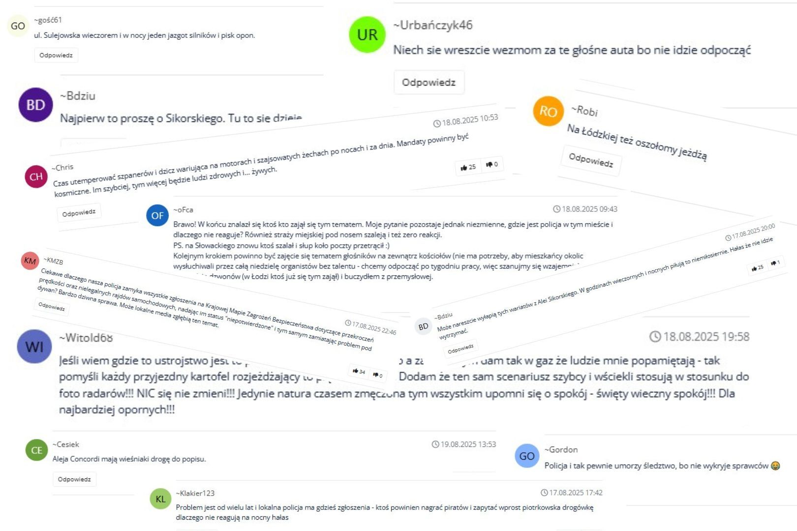 Po publikacji artykułu „Będzie ciszej w mieście? Fotoradary akustyczne mogą pojawić się w Piotrkowie” na temat planów wprowadzenia Inteligentnego Systemu Monitoringu z funkcją wykrywania hałaśliwych pojazdów, na portalu ePiotrkow.pl pojawiła się lawina komentarzy mieszkańców. Wielu piotrkowian wyraziło poparcie dla takiego rozwiązania, podkreślając, że problem głośnych samochodów i motocykli, szczególnie nocą, od dawna zakłóca spokój w mieście. Dyskutujący zwracali uwagę na uciążliwe wyścigi uliczne i tzw. „koncerty z wydechów”, które stają się codziennością w niektórych rejonach. Część komentujących domagała częstszych kontroli policji i nowych narzędzi, licząc, że zdecydowane działania służb wreszcie przywrócą porządek i pozwolą mieszkańcom odpocząć od hałasu.