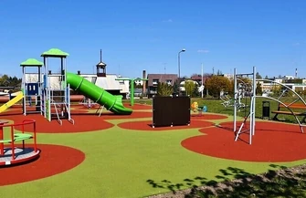 Na nowym placu zabaw znalazło się wiele atrakcyjnych urządzeń. Są wśród nich zestaw wielofunkcyjny z przejściami rurowymi, huśtawka wagowa i wahadłowa, zestaw zabawowy, sprężynowiec, linarium, tablica z liczydłem, zestaw wspinaczkowy, karuzela. Obok zabawek zamontowane zostały urządzenia do ćwiczeń: stepper oraz wioślarz. Całość uzupełniła bezpieczna nawierzchnia z poliuretanu.