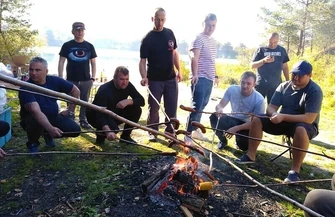 Po sprawnie przeprowadzonej akcji zaprzyjaźniona grupa miłośników nurkowania zorganizowała ognisko z pieczonymi kiełbaskami.
