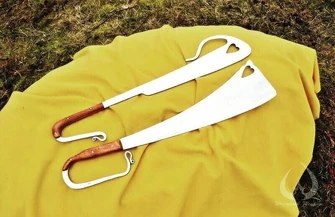 W swoim dorobku mają też pałasze szkockie z bardzo ekstrawaganckimi gardami, miecze z okresu Grunwaldu, a nawet jeszcze wcześniejsze. Wczesne miecze miały bardzo ciężkie głowice. Składały się z dwóch części. - By zabić je na stałe, trzeba było samemu stworzyć masę narzędzi. By stworzyć rękojeść potrzebne są liczne umiejętności – mówi Kacper. - Te drewniane miewają przedziwne kształty, więc to takie małe rzeźby. Obijamy je skórą, czasem owijamy drutem mosiężnym czy srebrnym. Musimy więc mieć umiejętność profesjonalnego szycia skóry czy lutowania mosiądzu.