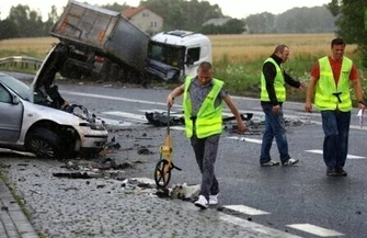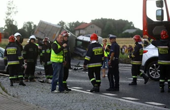 Ze wstępnych ustaleń policjantów wynika, że 53-letni kierujący infiniti jadąc w kierunku Piotrkowa Trybunalskiego, z niewyjaśnionych przyczyn zjechał na przeciwny pas ruchu, gdzie zderzył się czołowo z ciągnikiem siodłowym marki Scania. Pod wpływem uderzenia infiniti został odrzucony i uderzył w jadący za nim samochód osobowy seat toledo. W wyniku zdarzenia śmierć poniósł 53-letni kierowca infiniti. Pasażer infiniti, a także 49-letni kierowca scani oraz 26-latkowie: kobieta i mężczyzna podróżujący seatem toledo z obrażeniami ciała zostali przewiezieni karetką pogotowia ratunkowego do piotrkowskiego szpitala - informuje sierż. sztab. Ilona Sidorko, rzecznik prasowy KMP w Piotrkowie.