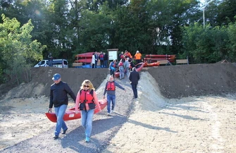 Po 15:00 kajakarze pojawili się w nowej przystani w Sulejowie przy ul. Podkurnędz aby następnie przepłynąć do również świeżo oddanej stanicy przy ul. Klasztornej.