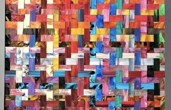 Praca została zrealizowana z papieru, wcześniej malowanego, następnie pociętego na wąskie paski i przeplecione w splocie płóciennym. Ta wizja artystyczna, pełna dynamizmu i energii, tworzy obraz pełen barw otaczających twórcę - mówi Janusz Kucharski.