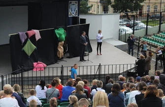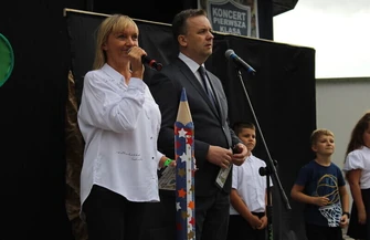 Oficjalne spotkanie w amfiteatrze miejskim rozpoczęło się od wspólnego pożegnania wakacji poprzez odśpiewanie przez dzieci i rodziców "Nie ma już wakacji" inspirowanej piosenką kabaretu OT.TO "Wakacje".