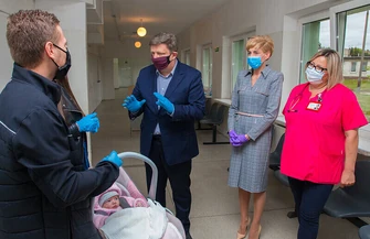 - ,,Ten szpital jest pierwszym domem Klary”. Te słowa mamy Klary były niezwykle wzruszające – mówi marszałek Grzegorz Schreiber. - Przed chwilą spotkałem się z rodzicami, zobaczyłem Klarę. Pamiętajmy – podkreśla marszałek Schreiber, że to dzisiejsze wydarzenie miało podwójny wymiar. To pierwszy kontakt Klary z rodzicami, którzy są ozdrowieńcami. To wielka i podwójna radość.