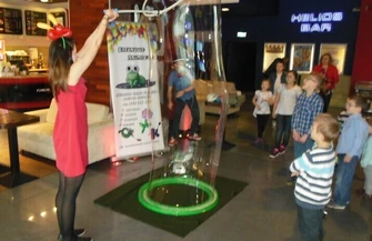Poza tym przed salą kinową na dzieci czekały takie atrakcje jak: zamykanie w bańce czy robienie znaków drogowych z baloników.