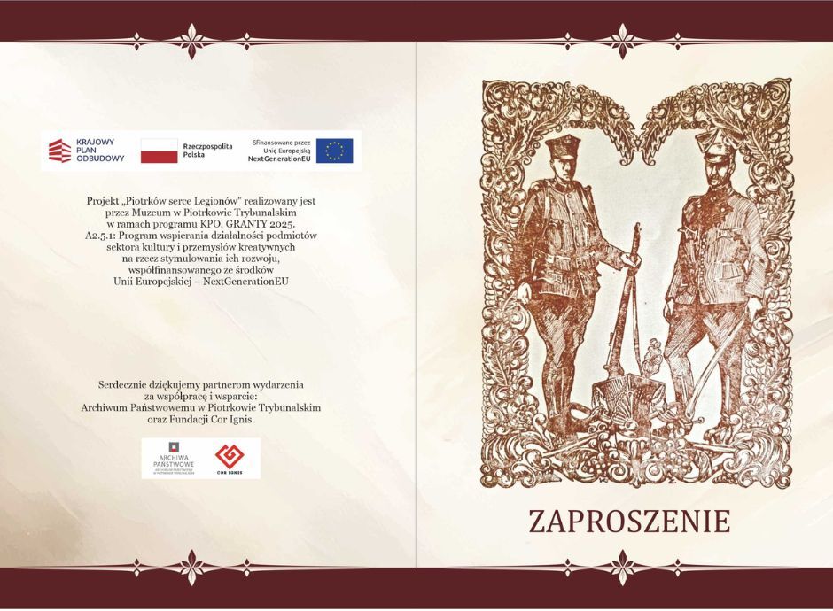 Projekt „Piotrków serce Legionów” realizowany jest we współpracy z Archiwum Państwowym w Piotrkowie Trybunalskim oraz Fundacją Cor Ignis. Przedsięwzięcie prowadzone jest przez Muzeum w Piotrkowie Trybunalskim w ramach programu KPO. GRANTY 2025. A2.5.1, współfinansowanego ze środków Unii Europejskiej – NextGenerationEU.