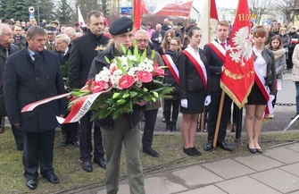 Pod pierwszym w Polsce pomnikiem Żołnierzy Wyklętych delegacje instytucji, stowarzyszeń, klubów, związków zawodowych i partii politycznych złożyły wieńce i kwiaty.