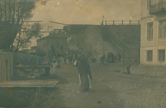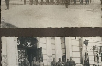06 – Podwórko kamienicy przy alei Szkolnej 23 (obecnie Aleje 3 maja), w czasie uroczystego podejmowania austriackich oddziałów przez przedstawicieli władz Piotrkowa.