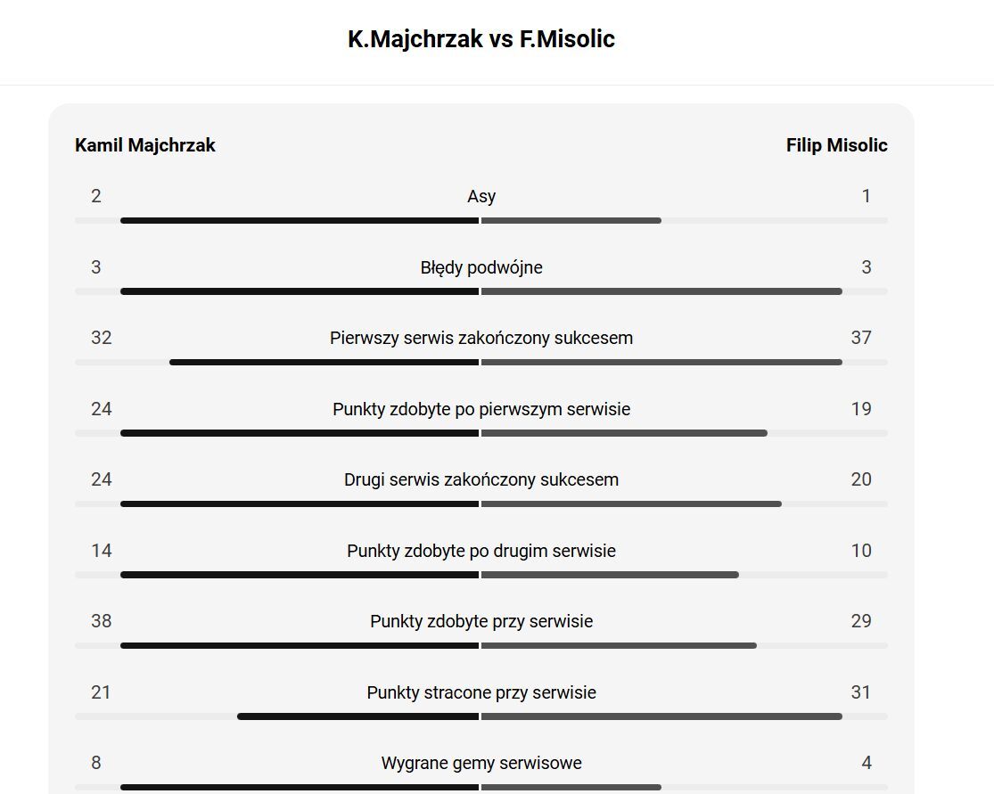 Kamil Majchrzak nie dał szans Austriakowi Filipowi Misoliciowi, który przebił się do turnieju głównego turnieju ATP 250 w Sztokholmie przez kwalifikacje. Piotrkowianin wygrał w dwóch bardzo podobnych setach 6-2, 6-2. Kamil Majchrzak w 1/8 finału zakończył występ w halowym turnieju rangi ATP 250 w Sztokholmie. W środę zawodnik PZT Team uległ 4:6, 6:4, 5:7 Amerykaninowi Sebastianowi Kordzie, byłemu numerowi 15. na świecie. Mecz trwał dwie godziny i 34 minuty. Kamil zdobył w Sztokholmie 18 pkt dzięki czemu awansuje na 70 miejsce w rankingu ATP.
