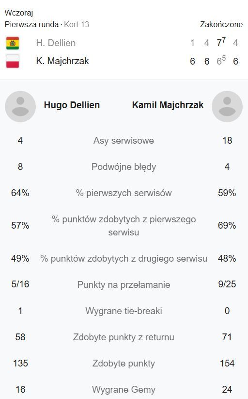 W drugiej rundzie piotrkowianin zmierzy z nr 9 rankingu ATP Karenem Chaczanowem. Rosjanin niedawno był w finale turnieju w Kanadzie, potem jednak skreczował w starciu z Alexandrem Zverevem w 1/8 finału w Cincinnati. Z Majchrzakiem grał czterokrotnie i jeszcze nie przegrał. W tym niedawno, na Wimbledonie, gdzie Kamil grał turniej życia (doszedł do IV rundy), ale z Rosjaninem ugrał ledwie 11 gemów.